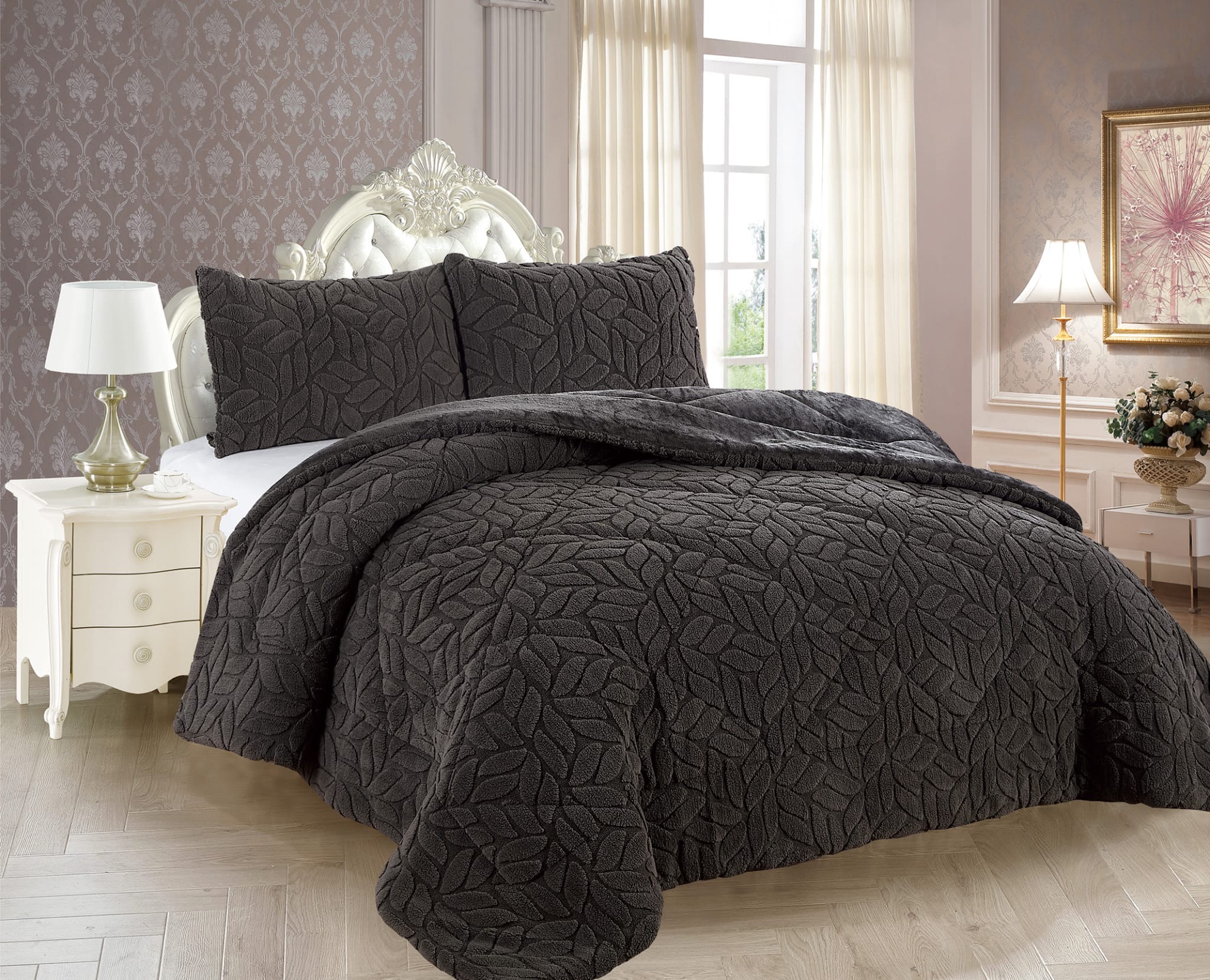 Wellsoft Yatak Örtüsü Yaprak Model Siyah
