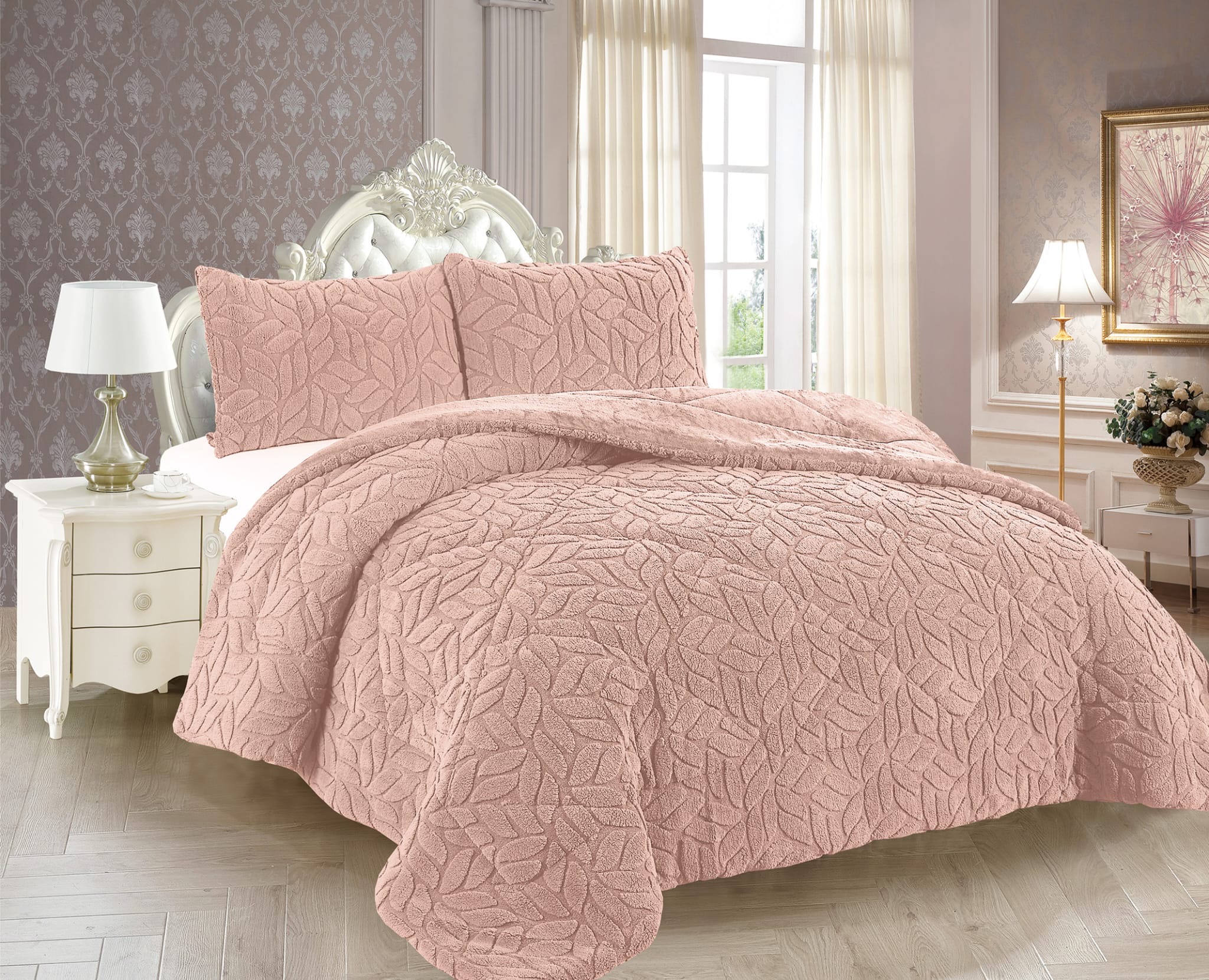 Wellsoft Yatak Örtüsü Yaprak Model Pembe